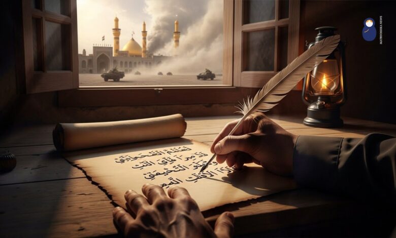 مناسبة هذا التاريخ الذي عشته وغطيت تفاصيله كمراسل حربي، هذه القصيدة التي ألقيت بعد انتهاء أحداث النجف وقبول الصدريين تسليم السلاح، والانسحاب من ضريح الإمام علي، وتسليم مسؤوليته لمكتب السيستاني، وإنهاء المظاهر المسلحة لهم داخل أحياء النجف.